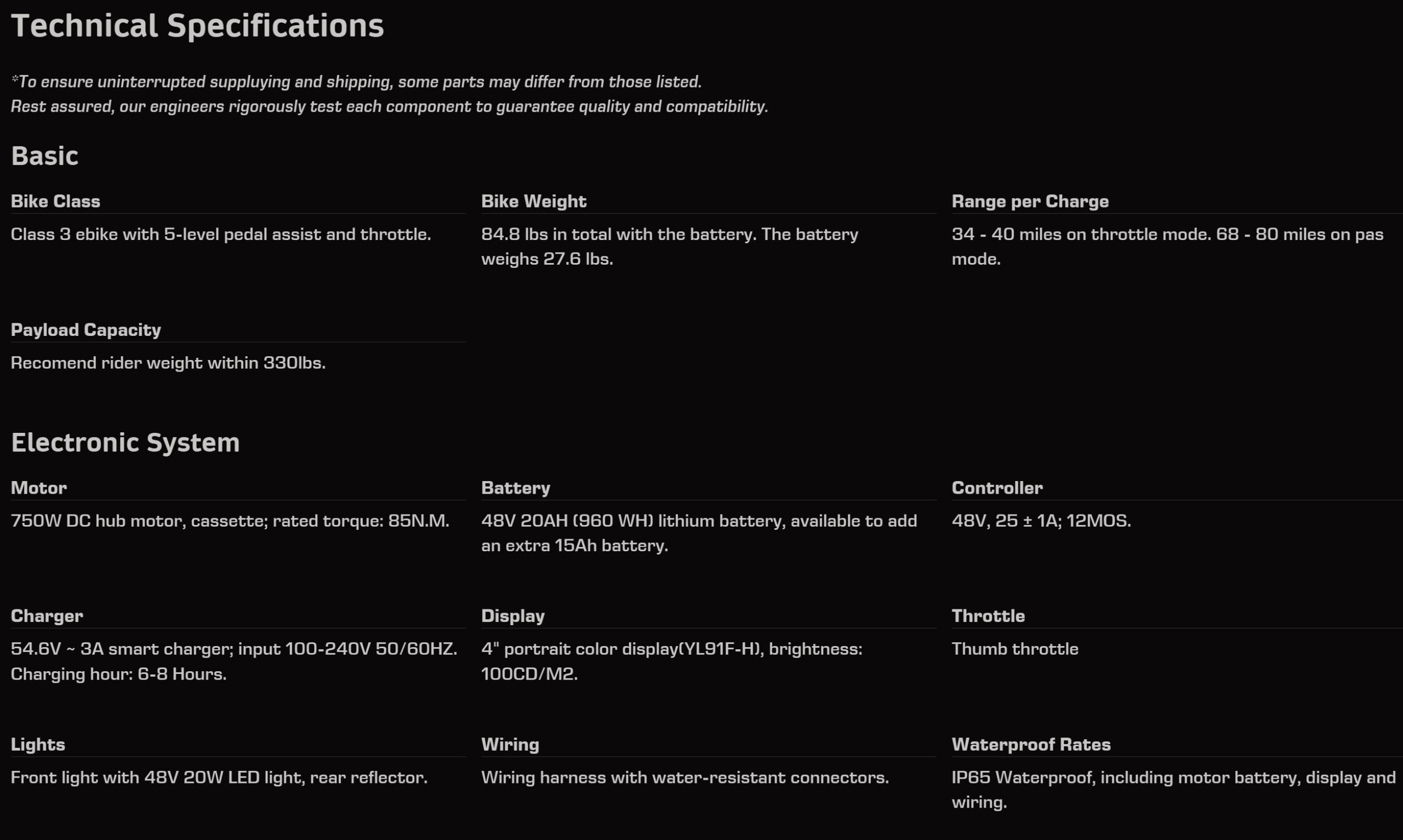 Central 1000W, Dual Engine 2200W, Rear Hub 1200W