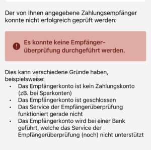 Sparkasse Bank, Unicredi Bank and Raiffeisen Bank in Germany and Austria do not perform “IBAN verification” for international transactions, but “deceive” clients with false information that IBAN is incorrect or does not match the owner account, as you can see in the images above.